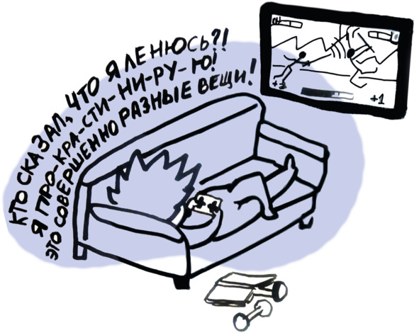 — Делайте только то, что хотите — и ни в коем случае не делайте того, чего не хотите! Это очень важно. Важно ни грамма энергии не потратить на усилия преодоления. Про эти усилия мы еще поговорим в главах 9 и 10, посвященных силе воли и привычкам, потому что без них, конечно же, в нашей жизни не обойтись. Но вам сейчас важно позволить себе делать то, что хочется, и главное — позволить себе не делать того, чего не хочется, какими бы ни были причины.