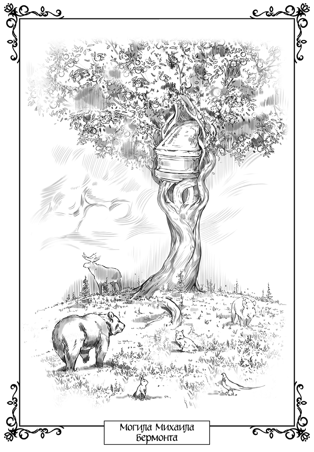 В нескольких метрах от берега тра́вы вымахали по пояс, и дух кругом разливался сочный и летний, хвойный, яблочный. Высокими стражами вставали зеленые ели, окружая остров по периметру, — искололи короля, мягко предупреждая: не ходи, не тревожь праотца. Но Бермонт шел, и взгляд его то и дело выхватывал то крепкий белый грибок, то россыпь красноголовиков в желтой хвое, то яркие пятна лисичек во мху. Шмыгали вокруг зайцы, взволнованно щебетали птицы: стой, не ходи! И в стрекоте любопытных пушистых белок он тоже слышал предупреждение.
