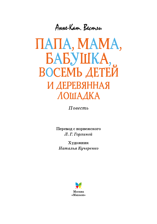 Папа, мама, бабушка, восемь детей и деревянная лошадка : повесть / Анне-Кат. Вестли ; пер. с норв. Л. Г. Горлиной ; ил. Н. Кучеренко. – М. : Махаон, Азбука-Аттикус, 2023. – ил. – (Яркая ленточка).