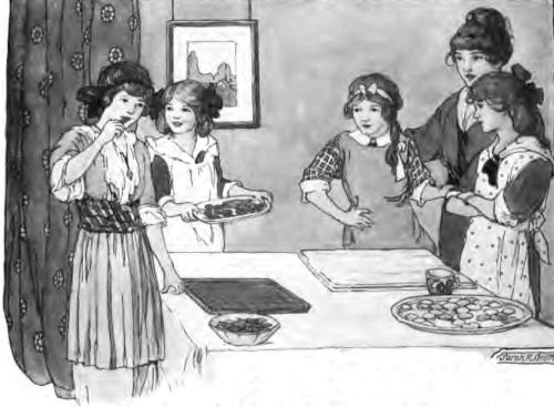 While Mildred was mixing these, Brownie took a last peep into the oven, and found the cakes were baked. Norah helped her take them out, and she herself took them from the pans and put them on a platter to cool. Then it was not long before the first panful of macaroons was done, too, and these came out all crisp and delicious.
