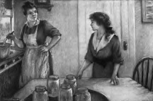 So Jack took the corn-popper and went down to the furnace, and when he opened the door, he found a great bed of red coals waiting for him; and Mildred and Brownie put on their big gingham aprons and went out into the kitchen.