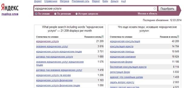 В настоящее время люди, которые нуждаются в оказании юридической помощи, все чаще ищут ее в Интернете. В качестве доказательства приведем статистику запросов юридических услуг в системе «Яндекс» в Москве за месяц: