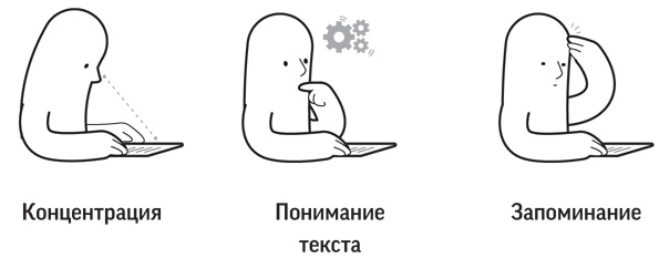 Более того, многие из нас легко отвлекаются при чтении или во время презентации. Возможно, вам знакома такая ситуация: на середине страницы вы внезапно вспоминаете, что нужно позвонить коллеге, или скоро купить продукты, или отправить еще одно электронное письмо. К концу страницы вы понятия не имеете, о чем был текст, и — начинаете читать его снова. Время потрачено впустую.