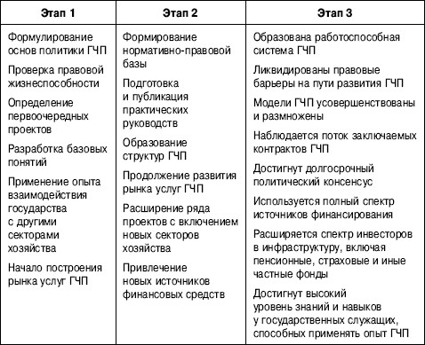 Таблица 1.Три этапа развития ГЧП