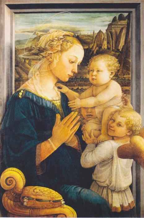 («Мадонна с младенцем и двумя ангелами»). Ок. 1450–1465 гг. Уффици