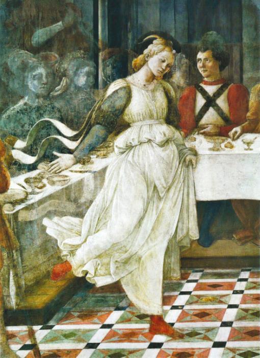 Последняя фреска, выполненная Липпи для собора Прато, посвящена Пиру Ирода и казни Иоанна Крестителя. Главной фигурой на этой фреске стала Саломея – прекрасная блондинка, весело танцующая с распущенными волосами.