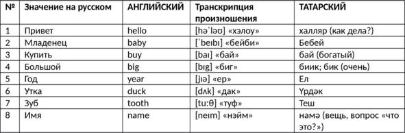 Таблица 1 — явный #татарENG