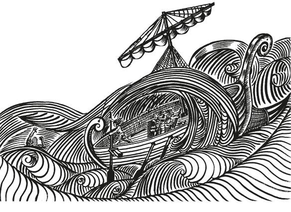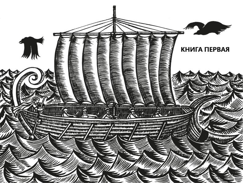 Ветер рвал паруса, разворачивал корабли боком к волне, и волны нависали всё выше и выше. Три корабля буря бросила на крутые утёсы острова Эгимур, а другие три унесла ещё южнее, в Большой и Малый Сирты, мелководные и опасные заливы у берегов Ливии. Корабль Оронта волна, перекрутив трижды, засосала в пучину. В воронке шторма крутились доски, копья, щиты и люди. Корабли Илионея, Ахата, Абанта и Алета едва держались на плаву, и не было ни одного, в днище которого сквозь щели не хлестала бы вода.