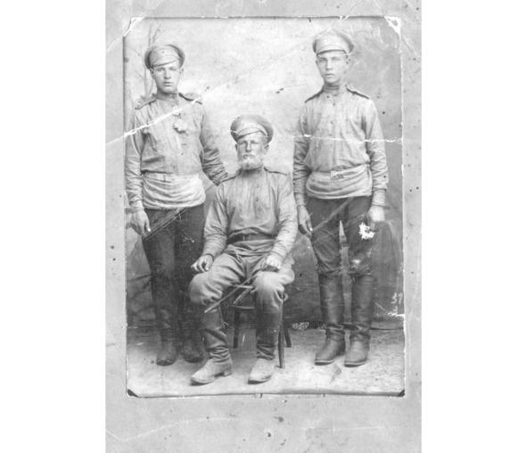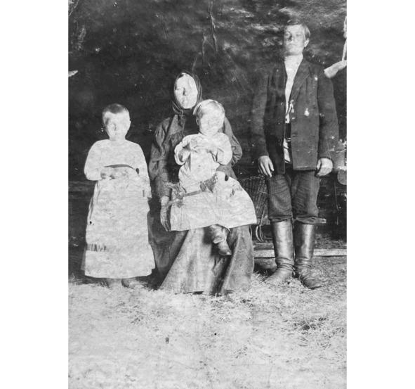 Думаю, вспоминая Молоково, уместно вернуться к фотографии предшествующих лет. Это самое раннее изображение — Николаю лет 14 или 16. Он стоит — в пиджаке поверх косоворотки, подпоясанной широким ремнем, в высоких сапогах. Из петлицы пиджака во внутренний карман тянется цепочка — часы! Это говорит о многом: и об определенном достатке и — главное — о статусе взрослого! На стуле сидит бабушка Анна с Глафирой на руках и рядом стоящей Марией. Одежда детей украшена атласными лентами. На бабушке Анне («бабушкой» ее тут не следовало бы называть: в эти годы ей было 34 года) платок с бахромой и юбка из ткани с узорами… Об этой фотографии известно также, что делал ее местный священник, увлекавшийся фотографированием.