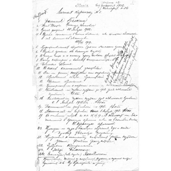 Документов той поры у меня не так уж много, но все-таки кое-что, бережно сохраненное родителями, есть. Среди них драгоценный раритет — «Личная карточка»: довольно ветхие, желтые листы странного формата 37 на 22 см, прошитые и скрепленные сургучной печатью. В верхней части первого посередине штемпель: