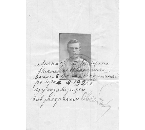 Удостоверение личности Н. И. Белкин, 1923 г.