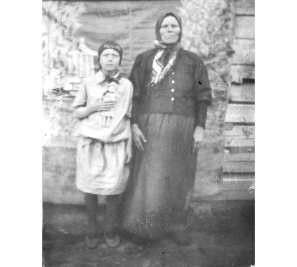 На другой, гораздо более поздней фотографии, бабушка Анна с младшей дочерью Прасковьей. Оценивая «на глаз» возраст девочки, можно предположить, что фото сделано около 1930 года.