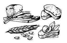 Хлебобулочные изделия. Булочки для хот-дога содержат 340 ккал, рогалик – 330, тосты – 310, лаваш армянский – 280, батон нарезной – 270, хлеб зерновой – 230, бородинский – 200, ржаной – 180, булочка с отрубями – 80. Вместо белого хлеба используйте ржаной или, если позволяет желудок, с отрубями.