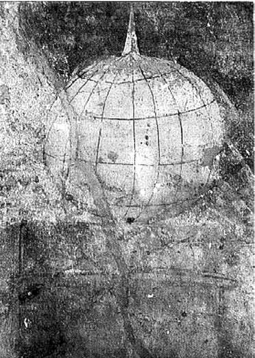 На этой фреске, найденной на развалинах Помпеи, римского города, уничтоженного вулканом в 79 году н. э., изображен земной шар с венчающей Северный полюс горой, которая, вероятно, изображала источник холода, а позднее стала считаться магнитной горой.