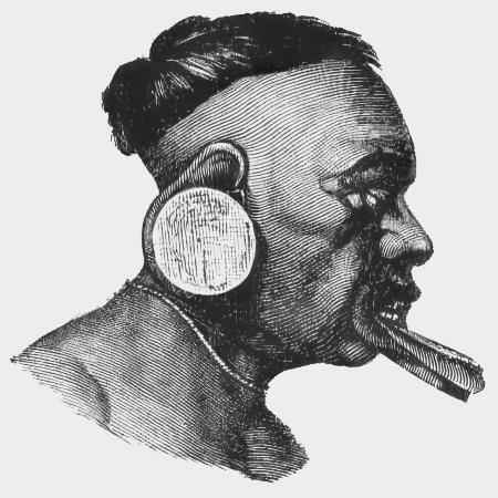 Рис. 1.2. Растягивание мочки уха у аборигенов Борнео