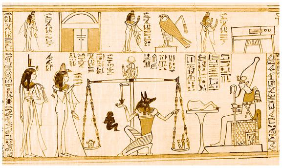 Фрагмент папируса «Книги мертвых» с изображением загробного суда Осириса. Третий переходный период.