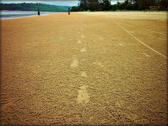 Ооооо! Тот берег оказался сказкою! Нетоптаный, плотный, ярко-жёлтый песок широкой пляжной полосой простирался в обе стороны, к тому же пляж оказался почти пустынный. Нетронутое туристами место сохраняло свою естественную природную притягательность.