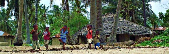Типичные хижины танзанийцев виднелись среди деревьев, редкие прохожие шли навстречу. Середина дня, жара. В одном из заливов спрятался крошечный рыбацкий порт с десятком лодок под высокой скалистой стеной. На том берегу народ суетился. Несколько бетонированных колодцев служили источником пресной воды, а там где вода — там жизнь. Женщины стирали бельё поодаль и, расстелив по зелёной траве цветные юбки с платками, сушили их на солнце. Всё вокруг пестрело яркими красными, жёлтыми и синими пятнами.