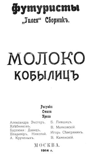 Александра Экстер, Хлебников, Бурлюки: Давид, Владимир, Николай, А. Крученых, Б. Лившиц, В. Маяковский, Игорь Северянин, В. Каменский.