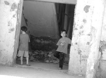 У подъезда многоэтажного дома. Район «7-й школы», Грозный, Чечня, 2004
