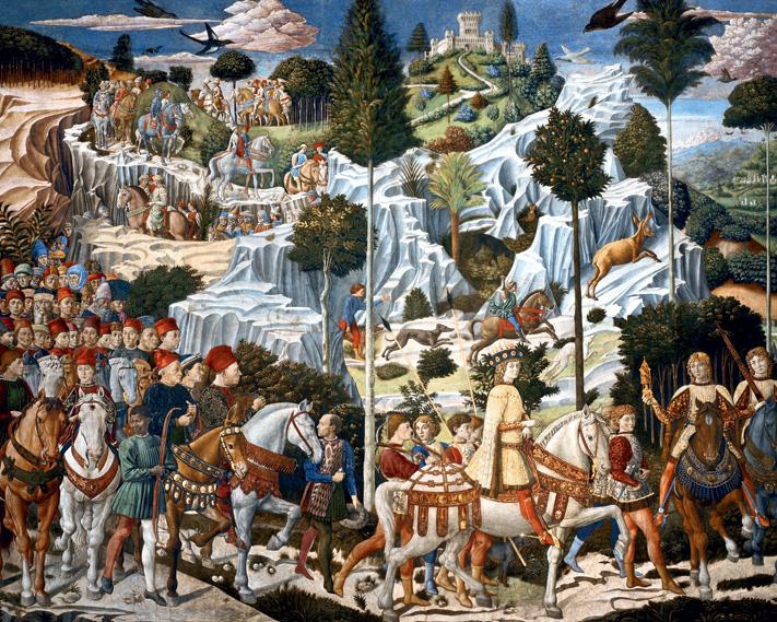 «Шествие волхвов в Вифлеем». Художник Б. Гоццоли. Роспись под влиянием Флорентийского собора 1453 года в Капелле волхвов палаццо Медичи-Риккарди, Флоренция. 1459 г.