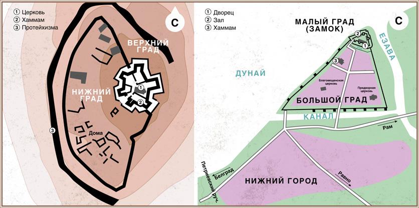 Планы последних сербских крепостей Ново-Брдо (слева) и Смедерево (справа) незадолго до падения в XV в.