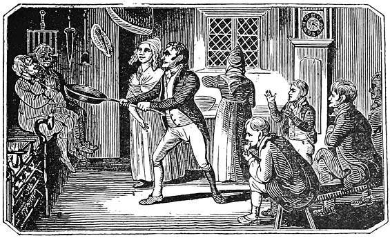 It was customary to make a straw man riding a straw horse, as an effigy to represent the guilty. Such effigies were carried round the most public places in order to make those who were guilty of breaking the Seventh Commandment ashamed of themselves. The procession was a very noisy one, and accompanied by men with horns and brass, etc., and sometimes a song was composed for the occasion.