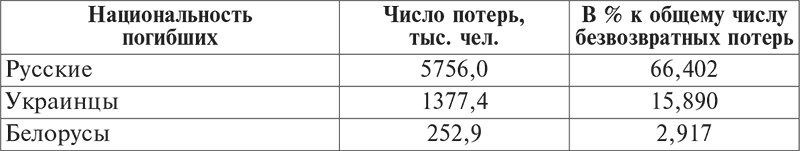 Таблица 1. Безвозвратные потери Красной армии в годы Великой Отечественной войны по национальному составу