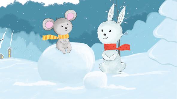 Наконец вьюга утихла. И друзья зайчонок Ух и мышонок Шух, жившие в маленькой деревушке, в маленьком теремке вышли поиграть в снежки. Ух и Шух сразу провалились в глубокий снег.
