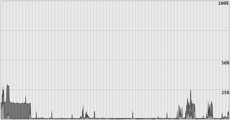Будьте внимательны. Даже если вы отключите все приложения, которые можно завершить, в операционной системе все равно могут работать какие-то сервисы, потребляющие ресурсы процессора. Типичным примером является Защитник Windows (Windows Defender), который может решить произвести какую-нибудь сложную операцию в любой момент. На рис. 2.1 виден типичный шум от процессора в Windows8. Обычно системные процессы не настолько агрессивны, чтобы совсем испортить бенчмарк, но будьте готовы к тому, что некоторые из измерений окажутся намного больше других из-за шума на уровне процессора.
