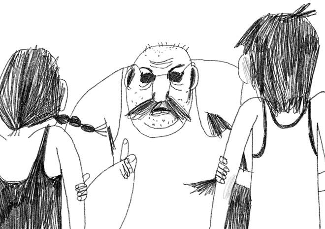 Тут подошел спасатель, с таким большим животом, словно он только что проглотил гигантский мяч. А еще у него были усы, как у моржа. Да и вообще, он весь походил на моржа, разве что без бивней.