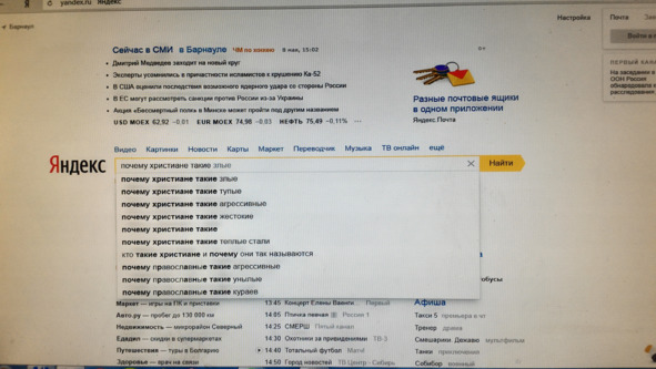 Недавно слушал одно выступление, в котором приводили результаты исследования: по поиску в Яндекс набирали фразу «почему (христиане) такие» и также слово в скобках «христиане» заменяли на мусульмане и буддисты. И я лично провёл это исследование, стал набирать такие фразы и как только набираешь первые три слова, сразу выскакивает множество вариантов поисковых фраз, что люди думают и как ищут ответ на суть вопроса. Я даже ещё добавил православные и протестанты, чтобы узнать, что про эти конфессии думают люди и как характеризуют. Вот результаты: