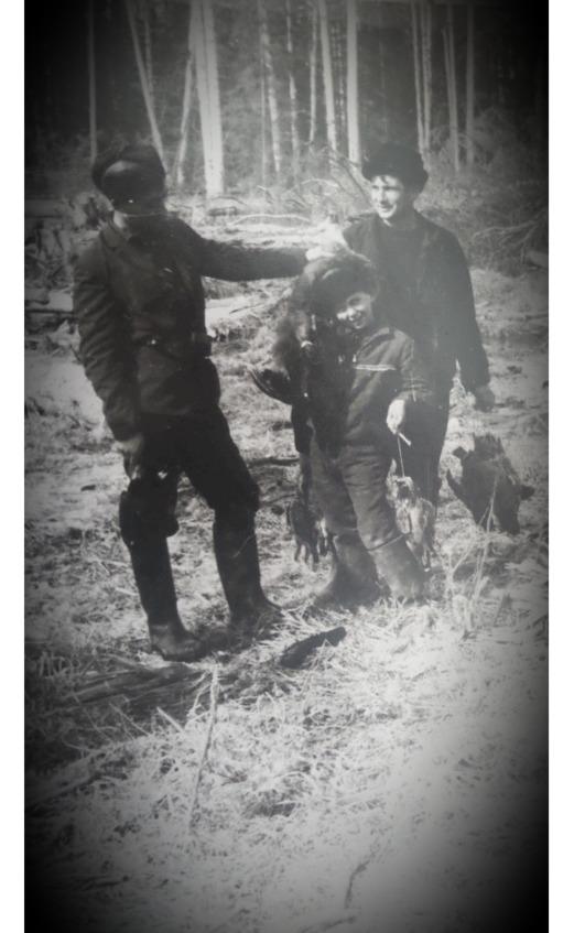 Идём как-то все вместе по тайге, добыли несколько белок. Отец их тут же обдирал, а тушки делил и скармливал собачкам в награду за совместную охоту. Выходим на поляну, стоит одинокая сосна. Высоченная! До самой кроны ни одного сучка нет. Ствол гладкий, высоко уходит в небо. Собаки заливаются лаем!