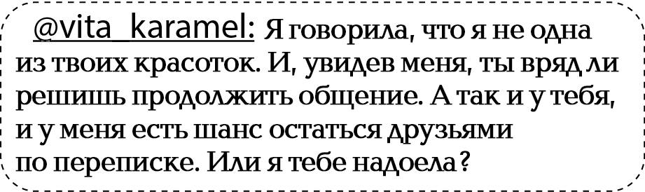 Он не остаётся в долгу, ставя меня на место жёстко, даже жестоко. И я сижу, притягивая к себе колени в растянутых легинсах, кусаю уголок губы, не зная, что ответить, сдерживаю слёзы, пока не приходит сообщение в личку: