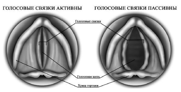 При говорении или пении мышцы гортани изменяют положение хрящей гортани, в результате меняется просвет голосовой щели и натяжение связок. Чем сильнее натянуты складки, тем выше звук голоса.
