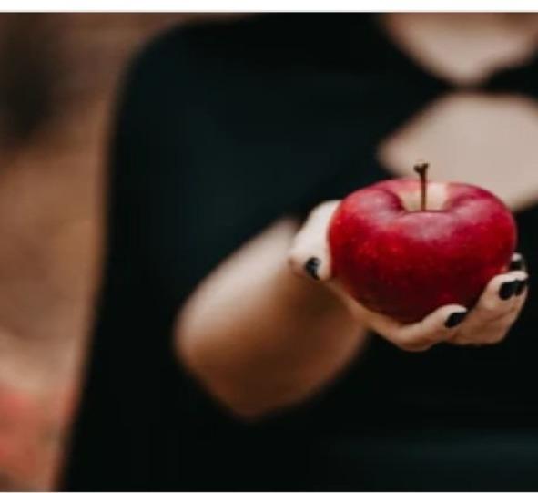 Но вот однажды, как раз как деревья осенней позолотой покрылись, закружила, заплясала листва перед Царским Теремом, и вышла из той поземки Краса-Девица, а в руках у нее — огромное красное яблоко, так светится, переливается, аж семечки в середине просматриваются!