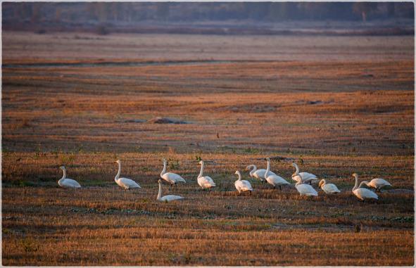 Когда Мастер открыл сундук, он ужаснулся грязи, которая покрывала его драгоценные монетки. С усердием стал он оттирать их. Каждая очищенная монетка превращалась в лебедя и вылетала в окно.