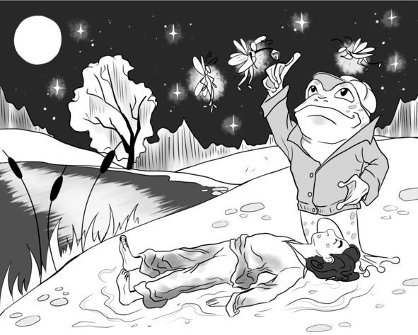 Филипп жадно глотал воздух ртом, бултыхал руками и ногами изо всех сил, но ничего не получалось. При попытке зацепиться за бревно он только отрывал куски старой коры и отталкивал его в противоположную сторону. Пруд затягивал на дно, и уже через несколько секунд он видел Луну и звёзды сквозь мутную зелёную воду. Филиппу оставалось только вопрошающе хлопать глазами проплывающим мимо лягушкам и рыбам, но, увы, никому не было под силу помочь ему справиться с этой бедой.