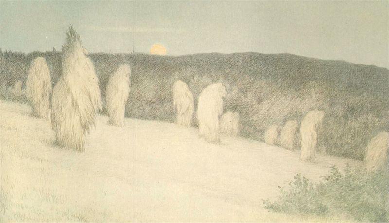 Т. Киттельсен. Стога в лунном свете. Ок. 1900