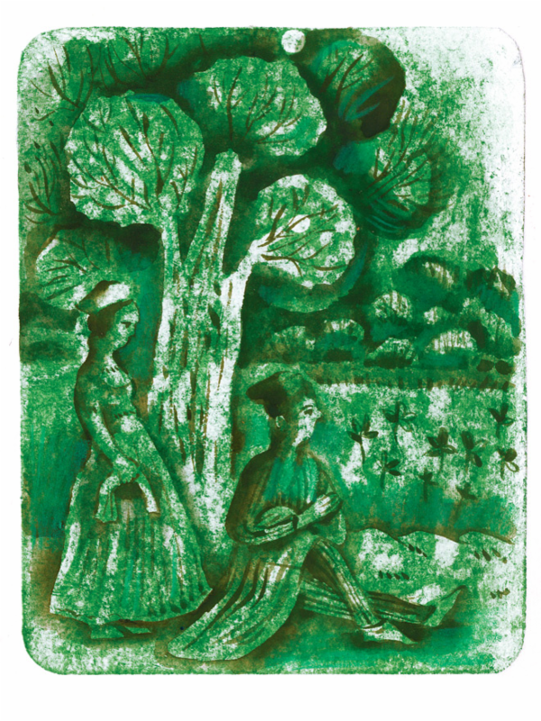 Потом она побежала к человеку. Он еще спал в тени, среди ветвей, в гнезде, на дереве. Она начала его толкать: