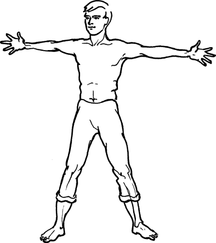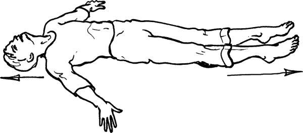 Лежа на спине с закрытыми глазами потянуться, вытянув пальцы ног и откинув голову. Вытянуть шею до конца. Дать максимальную растяжку всему позвоночнику – так же, как потягиваются кошки. Руки откинуть в стороны. Длительность упражнения 3–5 секунд (рис. 1).