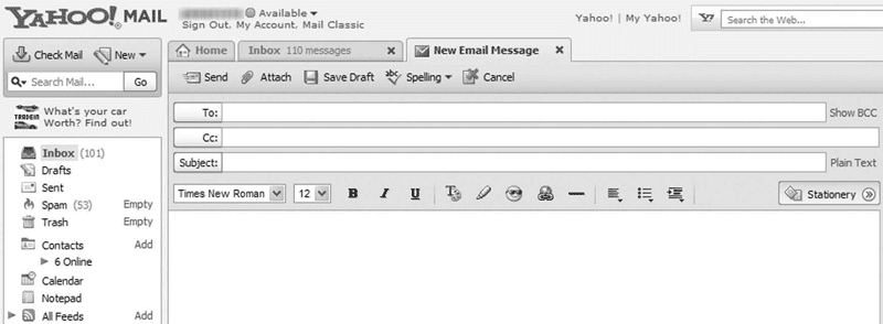 Рис. 1.1. Пользователи могут настроить свою электронную почту как в этом примере с Yahoo! Mail, и то же самое можно сделать и в таких клиентских приложениях, как Microsoft Outlook, Mozilla Thunderbird и Eudora