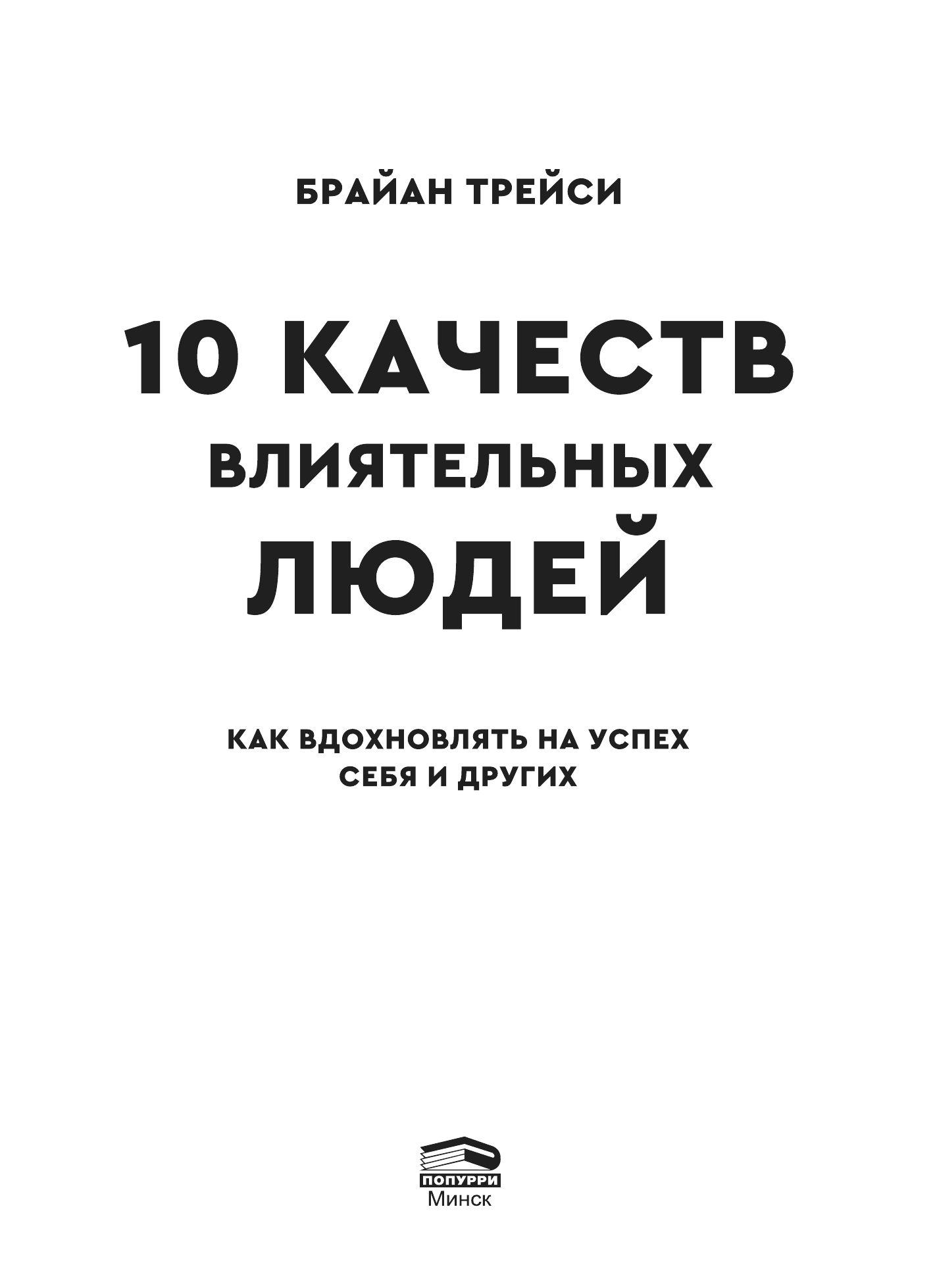 10 качеств влиятельных людей : Как вдохновлять на успех себя и других / Б. Трейси ; пер. с англ. Е. Бакушевой. — Минск : Попурри.