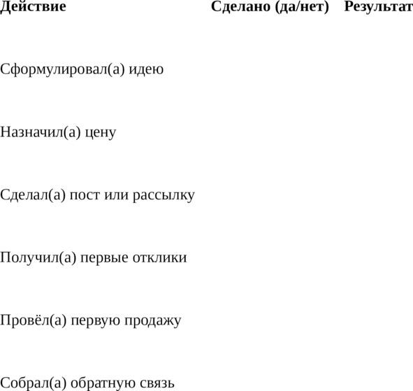 Заполните таблицу после запуска первой инициативы: