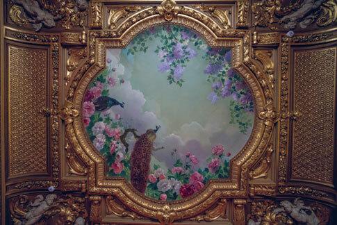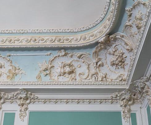 • декор в виде необычных скульптурных композиций. Фасад украшен фигурами младенцев путти: один играет на дудочке, другой высекает вазу, третий размышляет с циркулем над листом бумаги, – так представлены аллегории разных видов искусства: музыки, скульптуры и архитектуры. На крышу после реставрации вернули воссозданную по фотографиям статую Авроры (оригинальная была утрачена после революции);