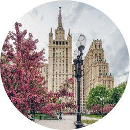 Ампир предполагает использование элементов классицизма, к которому я еще вернусь во время нашей прогулки. В качестве декора часто применяется скульптура: звезды, герб, колосья, лавровые венки, знамена и т. д. В Москве подобных зданий много, и если вы увидите перечисленные элементы в оформлении, то, скорее всего, перед вами сталинский ампир. Над строительством высоток работала целая группа талантливых архитекторов. Им удалось не только создать красивые и современные сооружения, олицетворявшие страну Советов, но также отразить в архитектуре русскую самобытность.