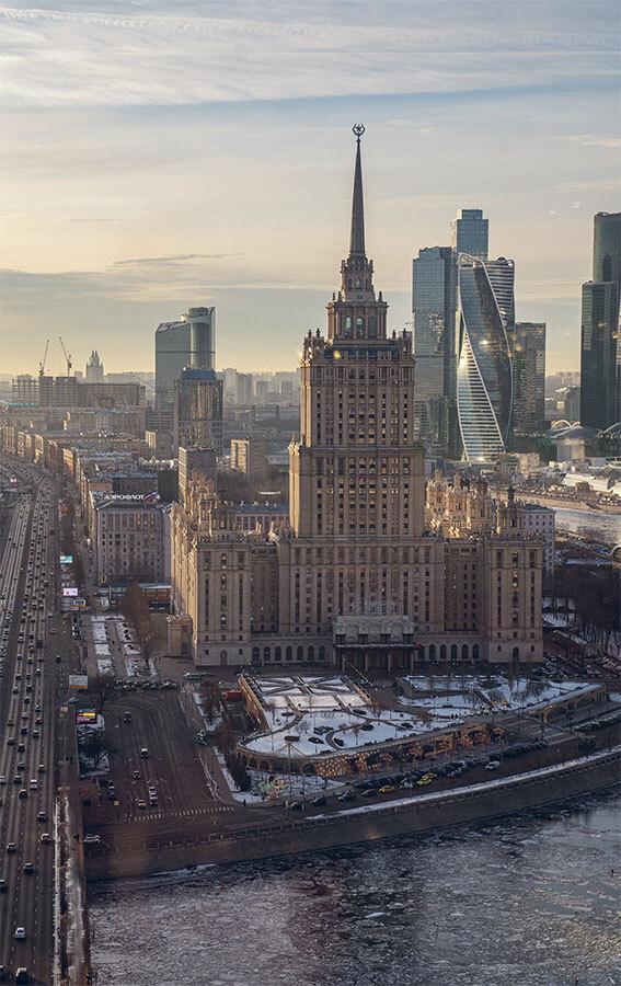 За «Украиной» видны самые высокие (после Останкинской башни) здания Москвы – небоскребы делового центра Москва-Сити. Кто бы что ни говорил про них, но для архитектуры столицы они уникальны и по-своему красивы.