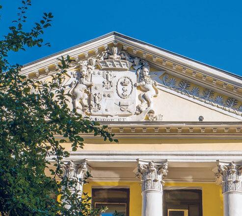 Усадьба была построена для семьи Долгоруковых в стиле классицизм, господствовавшем в то время. Он предполагает упорядоченность всех элементов, симметричный фасад, портик с колоннами и большой треугольный фронтон. Кстати, посмотрите на колонны, они – коринфские, а не ионические, с которыми мы познакомились на предыдущем маршруте. Капитель покрыта листьями аканфа, или аканта (ядовитое растение, чтимое в Древней Греции). О появлении коринфских колонн существует красивая и грустная легенда. Одна девушка, жительница Коринфа, заболела и скончалась. После похорон ее кормилица собрала то, чем умершая дорожила при жизни, сложила в корзину, накрыла черепицей и положила на могилу. Корзина случайно была поставлена на корень аканфа. Растение пустило стебли и разрослось по бокам корзины. Прижатые тяжестью листья изогнулись. Проходивший мимо скульптор Каллимах обратил внимание на живописно изогнутые листья и сделал по этому образцу колонну, которая дала название коринфской.