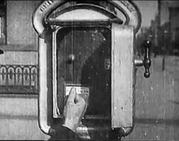 2. Крупным планом – уличное устройство пожарной тревоги, некто в шляпе подходит к нему, открывает и дает сигнал.
