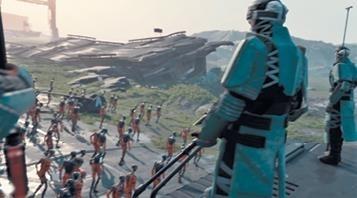 …Мы хотели, чтобы персонажи были одеты в нечто оранжевое, напоминающее тюремные робы. Но механические тела не нуждаются в одежде! Вариант с краской мы отвергли, поскольку он уводил восприятие в сторону роботов. Мы решили заменить одежду упаковочным материалом – чем-то вроде пленки, которой обтягивают товары после их изготовления на заводе…